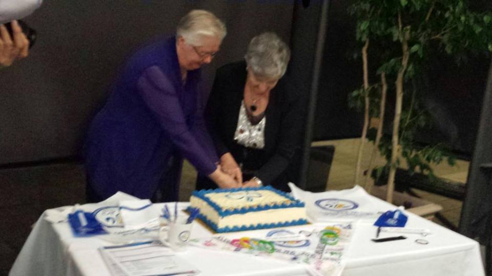 The meal was delicious – a beautiful pumpkin soup followed by a beef or chicken dish. After some spot prizes and then dinner, we were treated to a speech by our guest speaker, Dr Natasha Hendrick. After this speech, Mrs Margaret Luckett, Life Member and Archivist, came forward with Brenda to cut the cake.