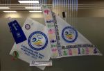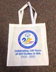 Most of these items feature the Centenary logo. This logo (look up the top of this blog) depicts the famous Western Australian black swan in four colours – the traditional royal blue of Girl Guides, the yellow of the bright WA sunshine (and also on our logo), the green of the environment and the sustainability of our organisation, and pink – just for fun! The swan is swimming on the blue waters of our iconic Swan River.