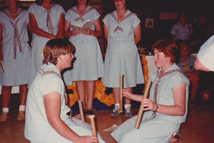 Warara Camp 1983 New Zealand Guides with Maori Sticks